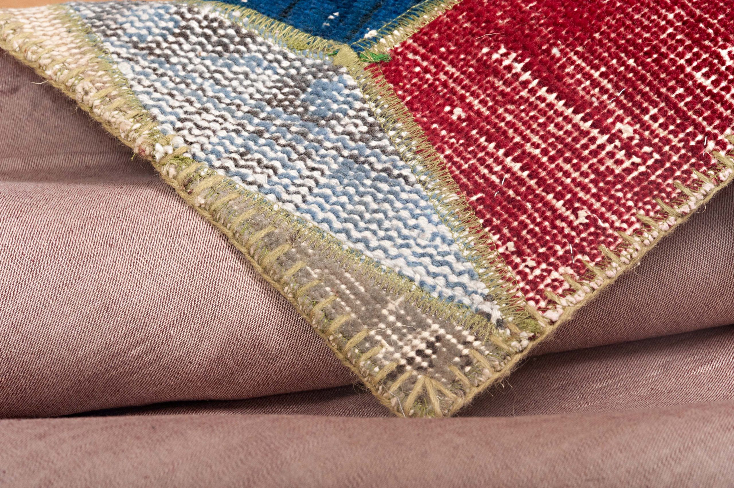 I tappeti Patchwork sono diventati di grandissima moda solo negli ultimi anni e vengono realizzati utilizzando pezzi di tappeti antichi turchi semplicemente ricolorandoli e accorciando il vello per ottenere un aspetto vintage. I pezzi vengono poi organizzati in una combinazione armoniosa e creativa di dimensioni e disegni, in cui ogni toppa racconta la propria unica storia. I tappeti Patchwork riescono a cucire assieme cultura, tradizioni e storia in maniera divertente e innovativa. Questo particolare tappeto multicolore è allegro e si adatta a qualsiasi ambiente. Dimensioni: 137x 91 cm.