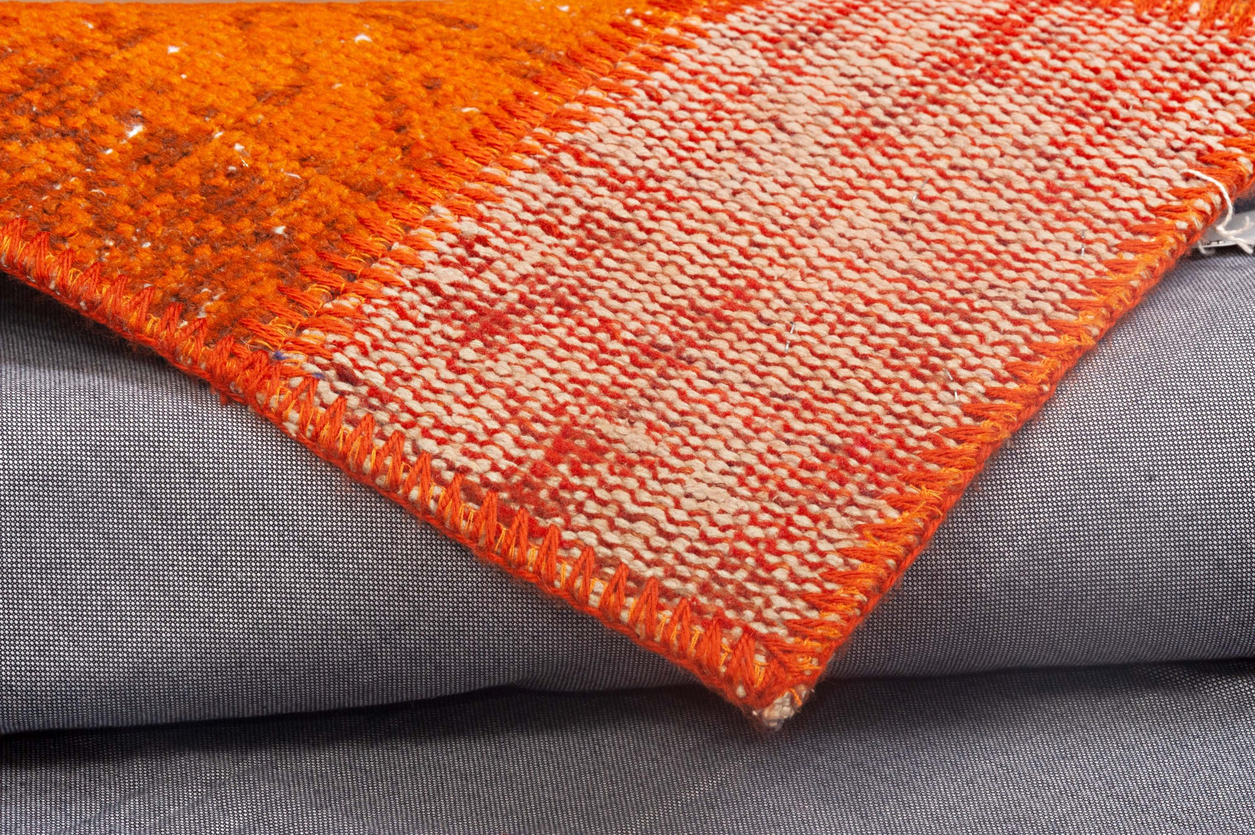 I tappeti Patchwork sono diventati di grandissima moda solo negli ultimi anni e vengono realizzati utilizzando pezzi di tappeti antichi turchi semplicemente ricolorandoli e accorciando il vello per ottenere un aspetto vintage. I pezzi vengono poi organizzati in una combinazione armoniosa e creativa di dimensioni e disegni, in cui ogni toppa racconta la propria unica storia. I tappeti Patchwork riescono a cucire assieme cultura, tradizioni e storia in maniera divertente e innovativa. Questo particolare esemplare racchiude tutte le sfumature del colore arancione rendendo il tappeto solare e adatto a qualsiasi ambiente. Dimensioni: 179x 116 cm.