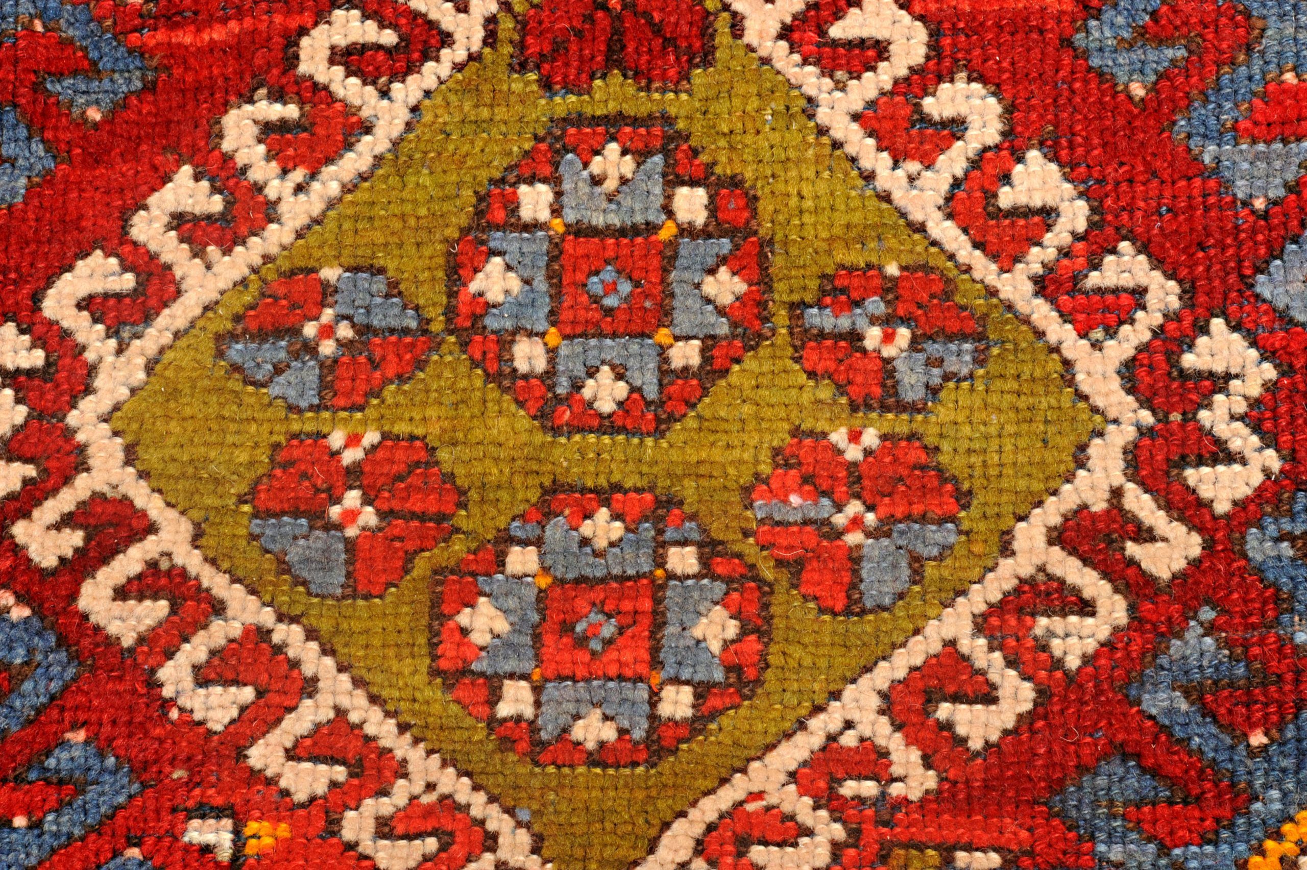 Purtroppo l’avvento del Barocco in Europa segnò il tramonto degli Ushak, che vennero sostituiti con tappeti dai disegni floreali.. Con la caduta dell’Impero nel 1923 la manifattura di corte di Ushak si interruppe definitivamente, lasciando il posto a manifatture periferiche di esemplari di piccolo formato e di kilim. Dimensioni 148×112 cm.