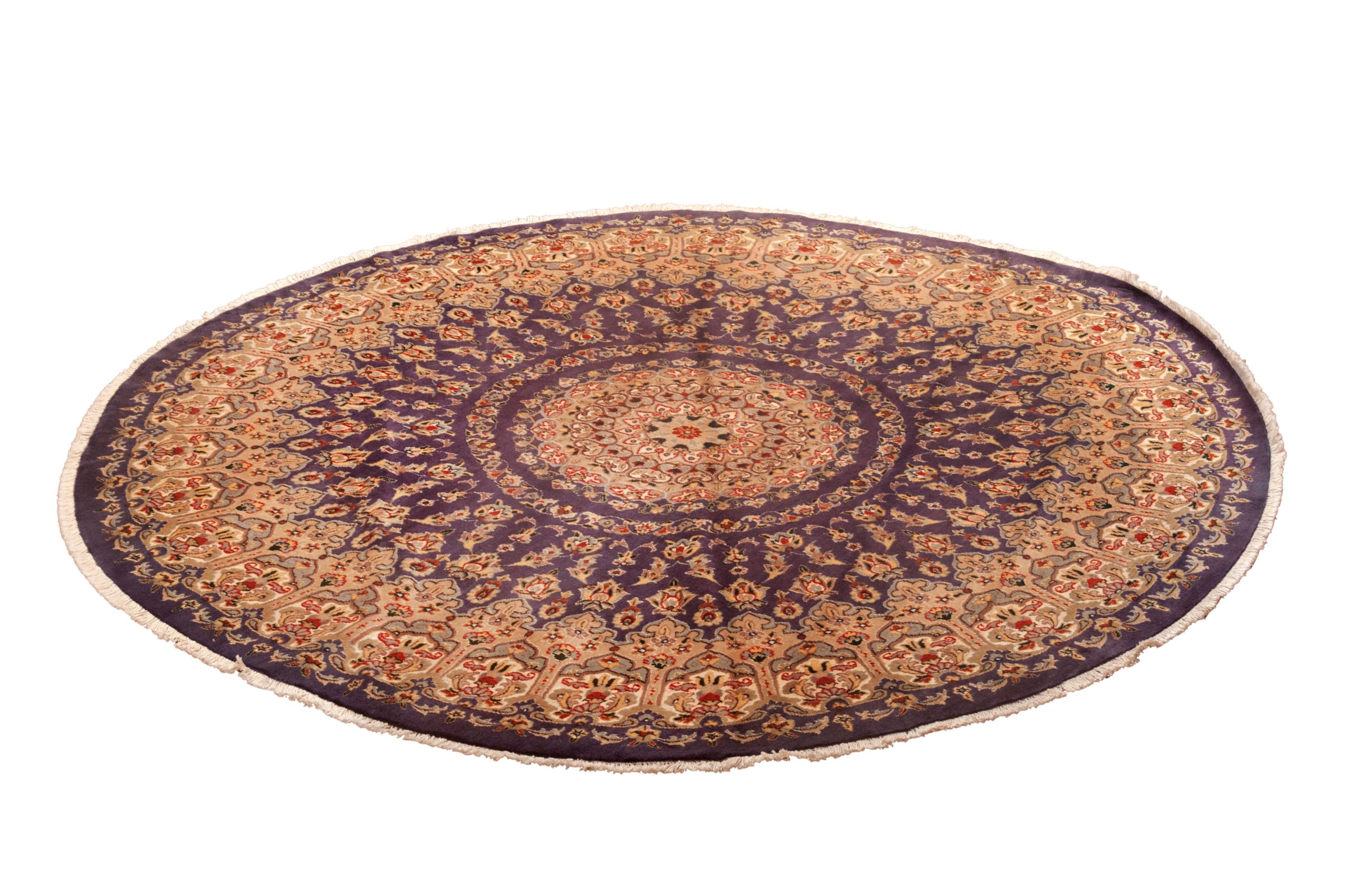 I tappeti Islamabad sono realizzati in Pakistan con lane molto soffici e seriche ispirandosi ai modelli dei tappeti persiani a medaglione o ad albero della vita. Generalmente questi tappeti pakistani sono realizzati con la tecnica del doppio nodo. L’annodatura in questo caso è particolarmente fine e la bellezza delle lane e il loro prezzo contenuto li rende molto apprezzati sui mercati occidentali. I colori prevalenti i questo Islamabad rotondo sono il beige, il crema il rosso e il fondo si colore viola. Dimensioni: 244×243 cm